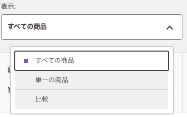 すべての商品、または特定の商品を指定して絞り込むことができます。