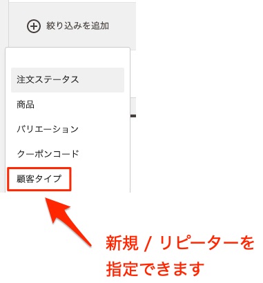 「高度なフィルター」を使用し、新規 / リピーターで絞り込んだ結果から、お客様のリピート傾向を知ることもできます。